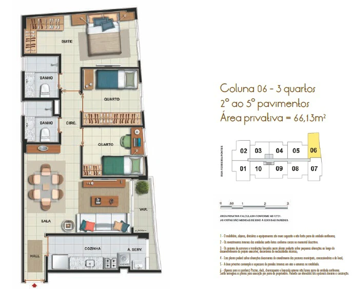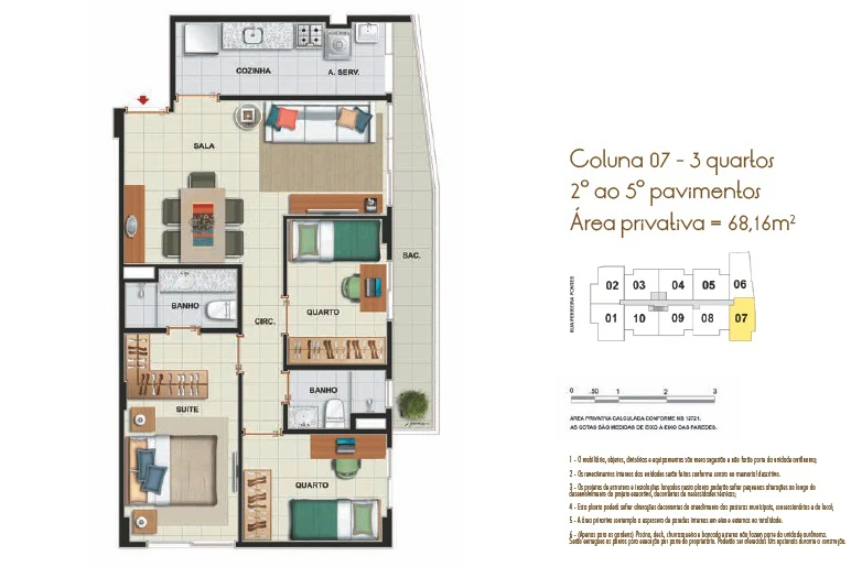 Apartamentos de 3 quartos com 72m² até 73m²,