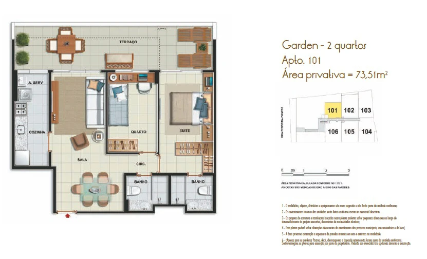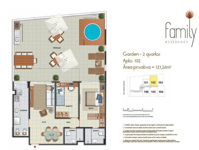 Apartamento tipo Garden 2 quartos com 73m² até 121m²,