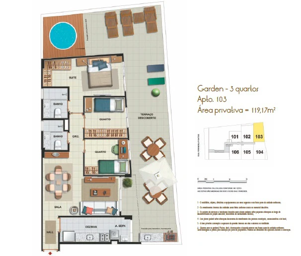 Apartamento tipo Garden 3 quartos com 119m² até 124m².